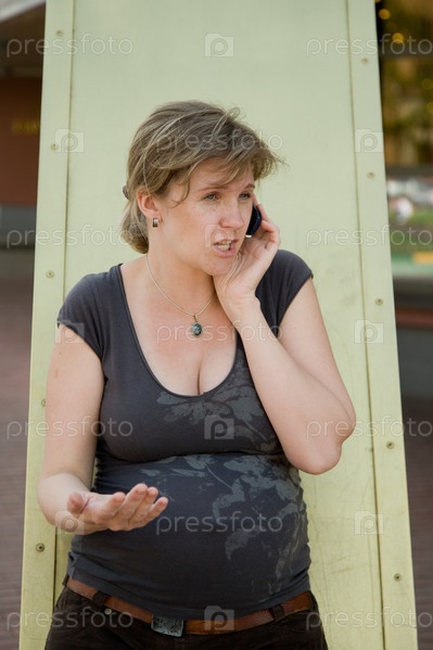 Беременная женщина говорит по телефону