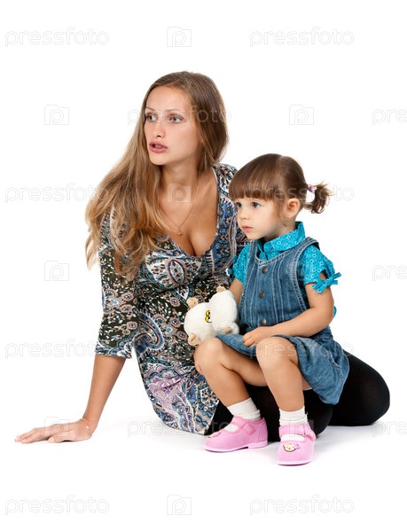 Мать с маленькой дочкой сидят на полу