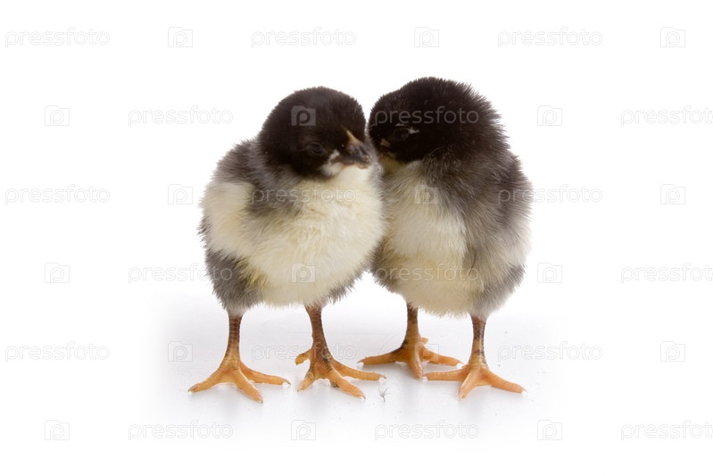 Два маленьких цыпленка на белом фоне