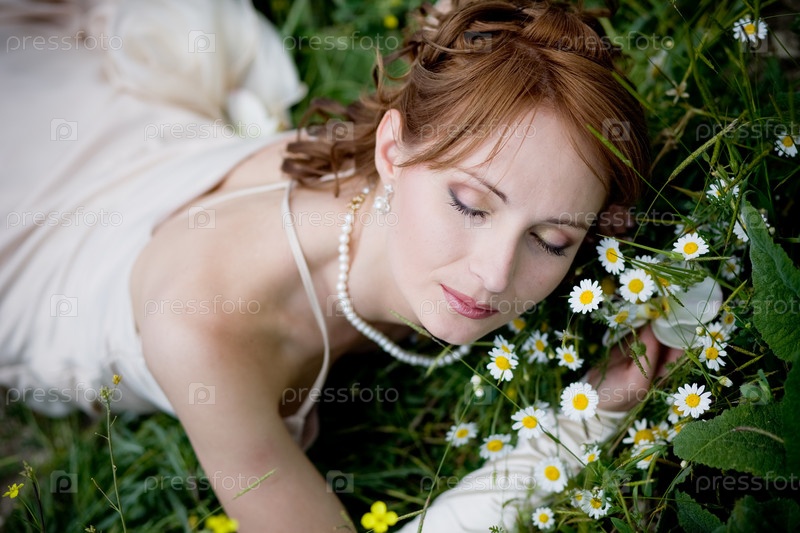 Невеста, лежащая на траве