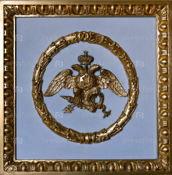 Золотой двуглавый орел в рамке на сером фоне