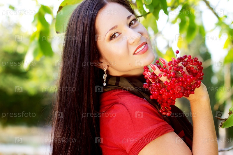 Красивая девушка с ягодами в осеннем парке