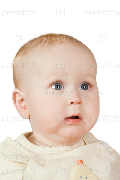 Маленький напуганный ребенок на белом фоне