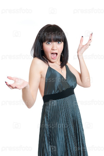 Девушка в сером платье на белом фоне