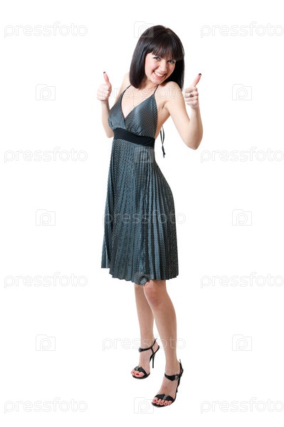 Девушка в сером платье на белом фоне