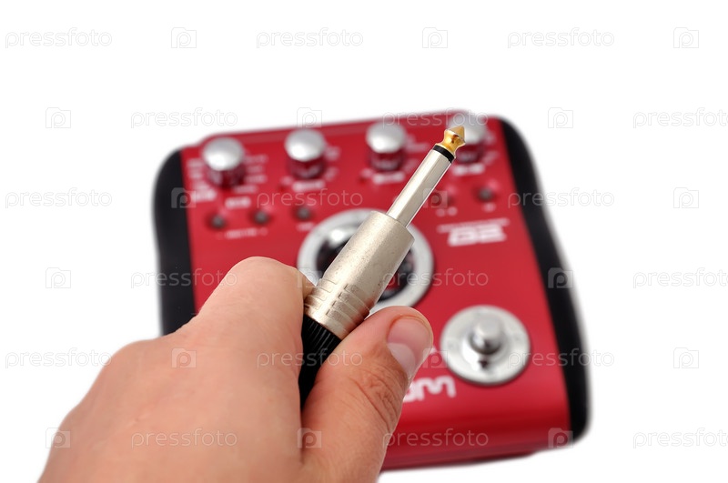 Педаль для электрогитары на белом фоне