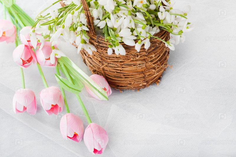 Весенние цветы: тюльпаны и подснежники