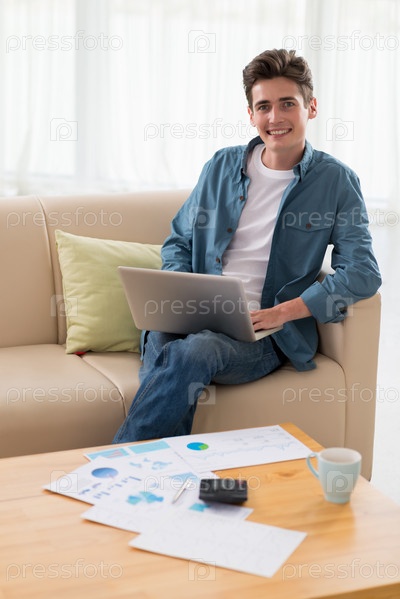 Красивый молодой человек с ноутбуком