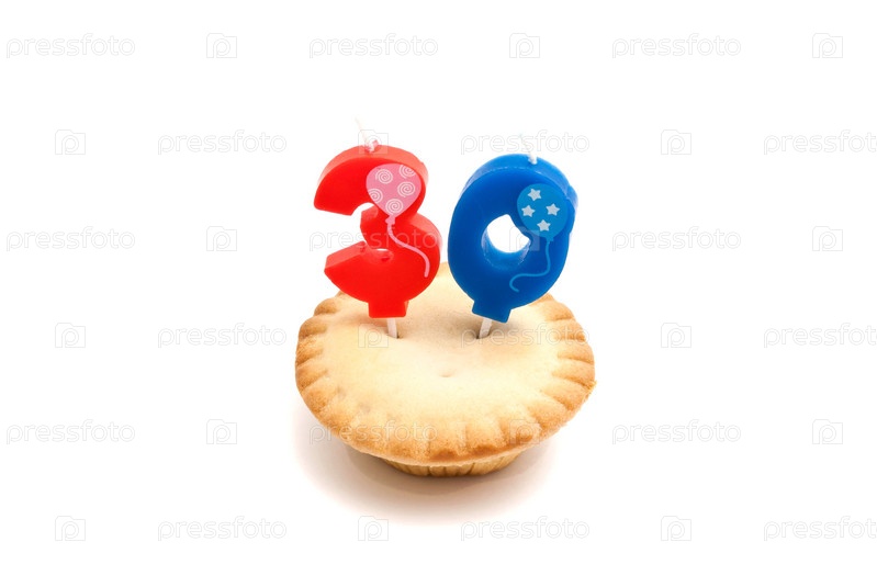 Кекс с тридцать лет день рождения свечи на белом