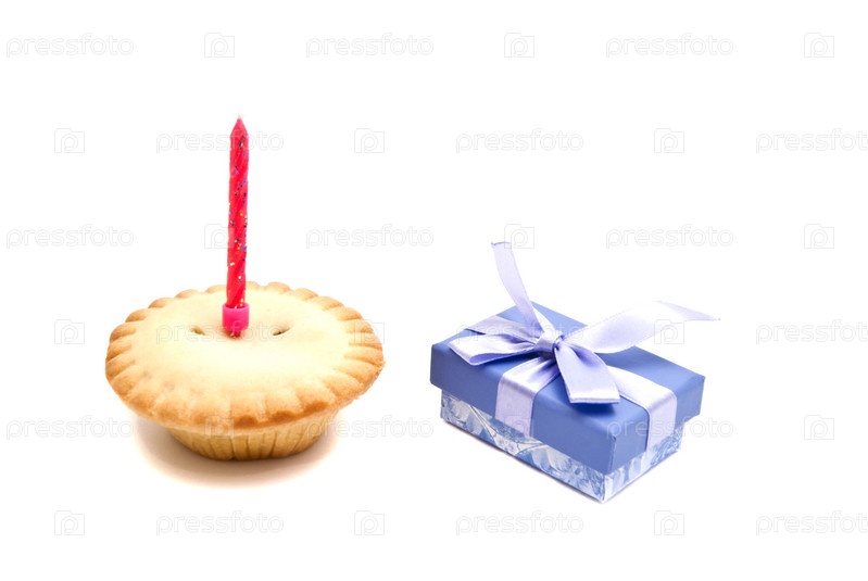 Кекс с красным днем рождения свечи и подарок
