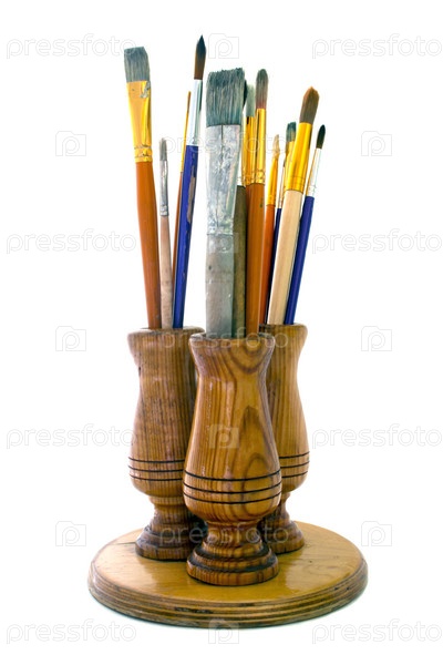 Кисти для живописи в стенд, изолированные на белом фоне