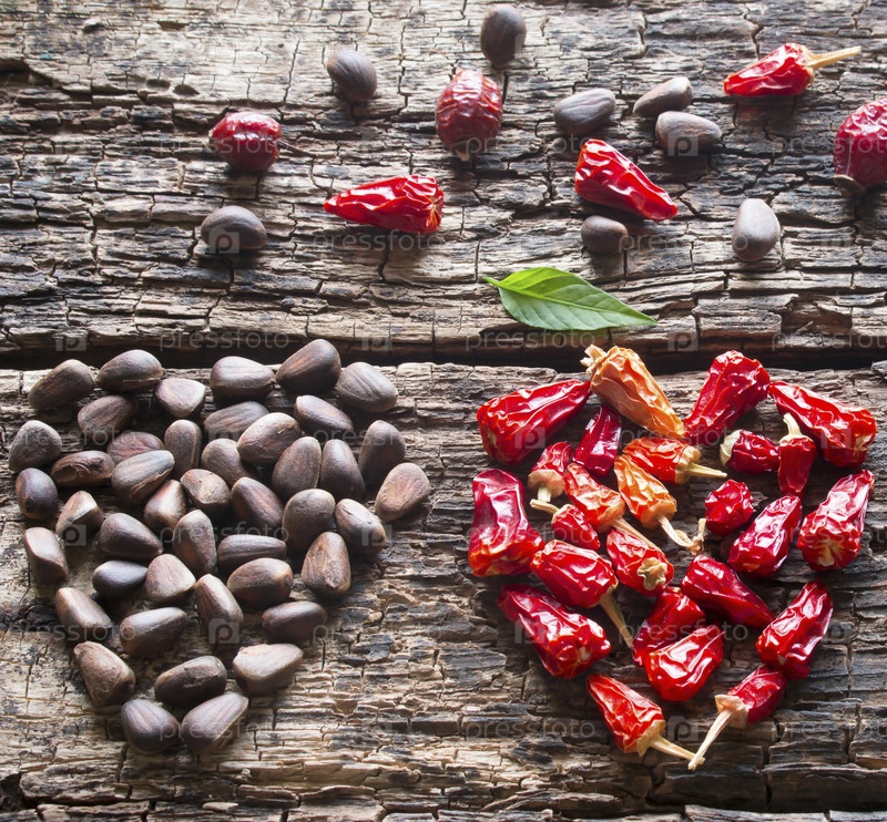 Кедровые орехи, красные перец и шиповник