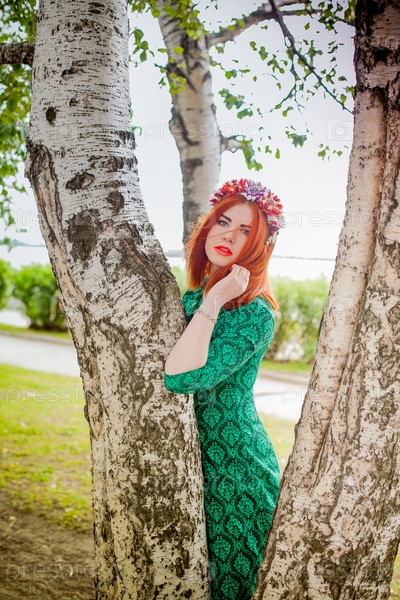 Красивая девушка у березы