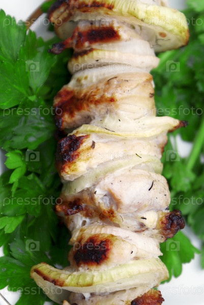 Аппетитный шашлык в листьях петрушки
