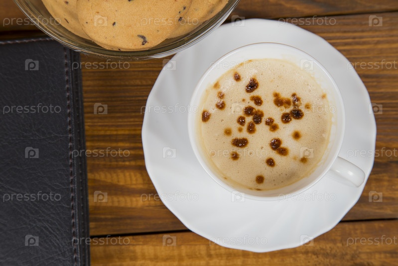 Компьютер чашку кофе и печенье