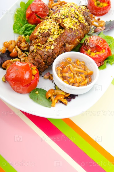 Бедро жареного ягненка на блюде