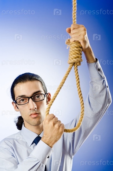 Серьезный мужчина держится за петлю