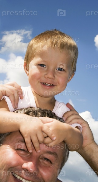 Отец с сыном на фоне облачного неба