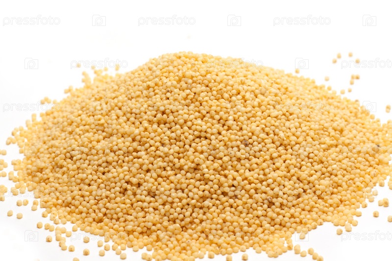 Куча проса рассыпается на белом фоне
