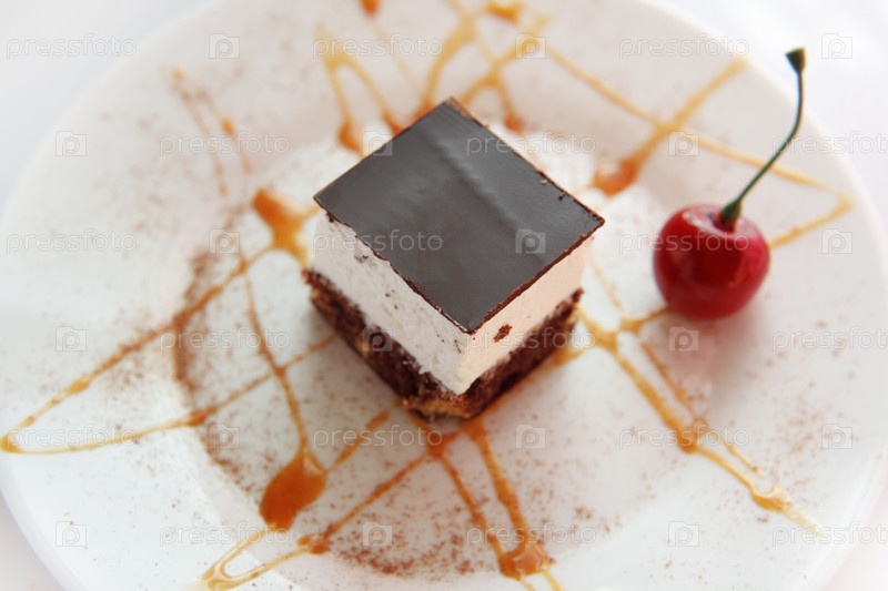 Шоколадное пирожное и красная вишенка