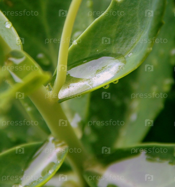 Капли воды на зеленых листьях