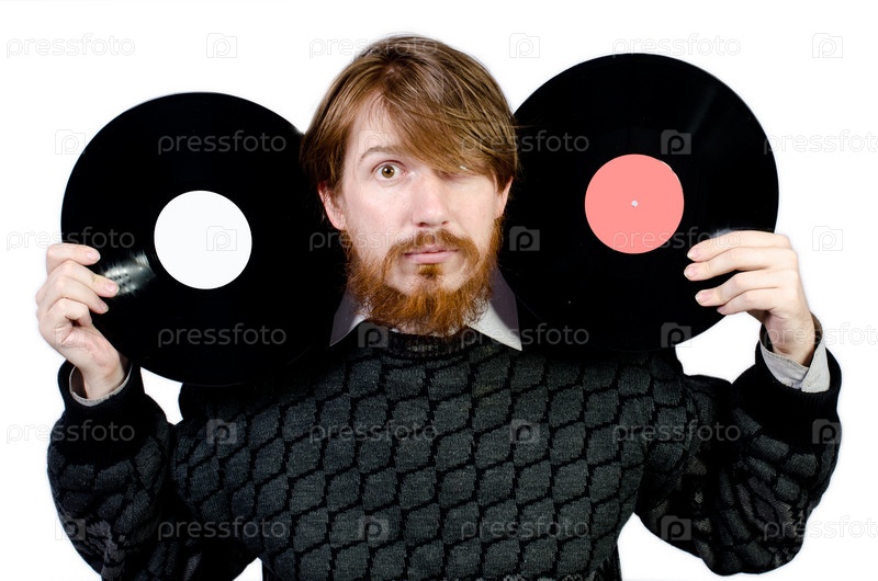 Бородатый меломан с пластинкой