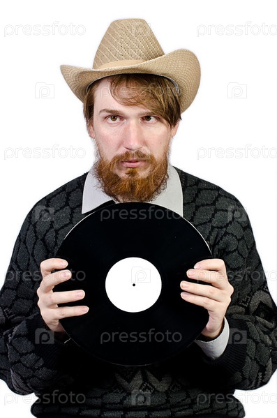 Бородатый меломан с пластинкой
