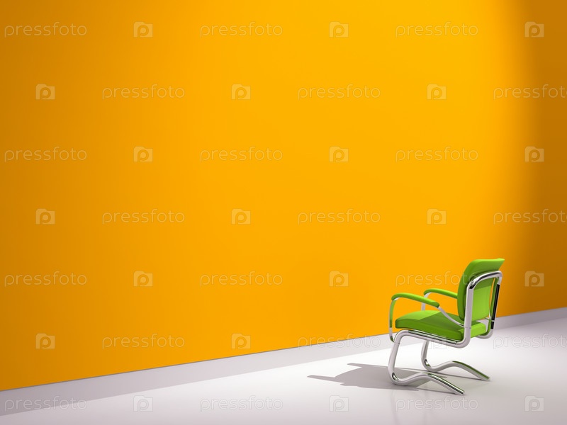 Зеленый стул у оранжевой стены