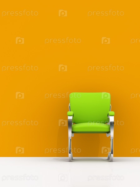 Зеленый стул у оранжевой стены