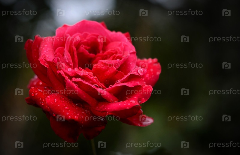 Красная роза в каплях воды крупным планом