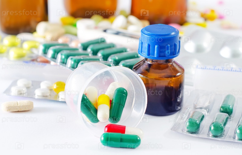 Таблетки и медицинские бутылки