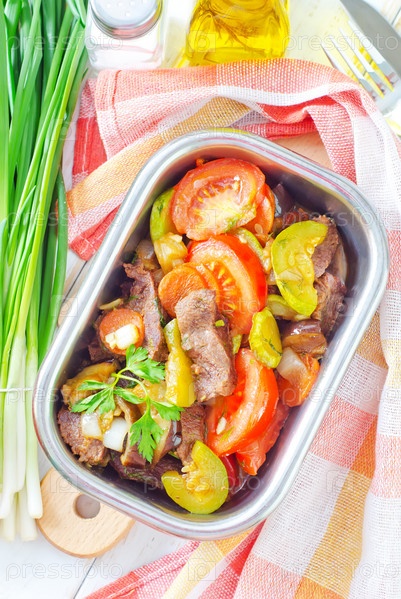 Запеченное мясо с овощами
