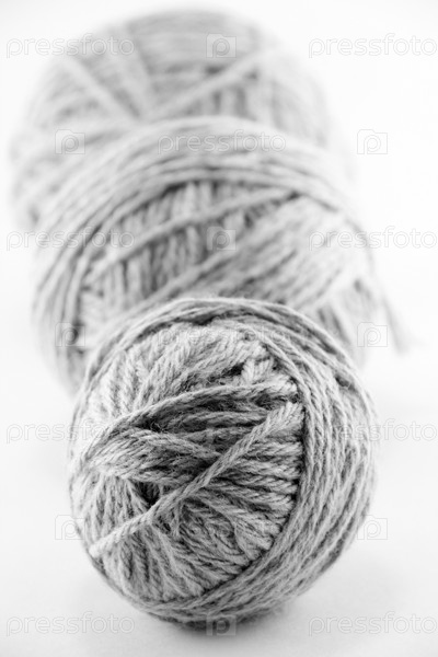 Клубки серой пряжи крупным планом