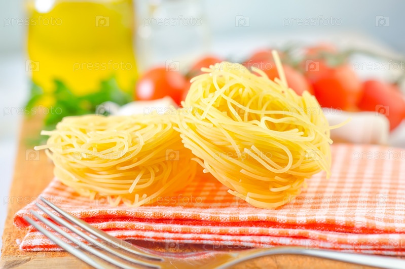 Сырые макароны и помидор