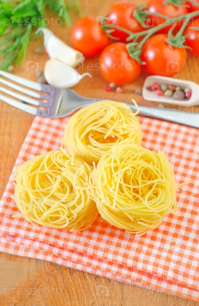 Сырые макароны и помидор