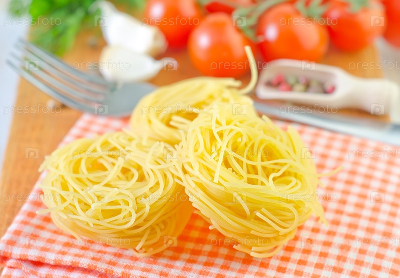 Сырые макароны и помидор