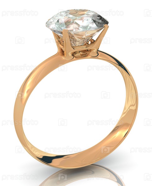 Золотое обручальное кольцо с большим бриллиантом, изолированное на белом фоне