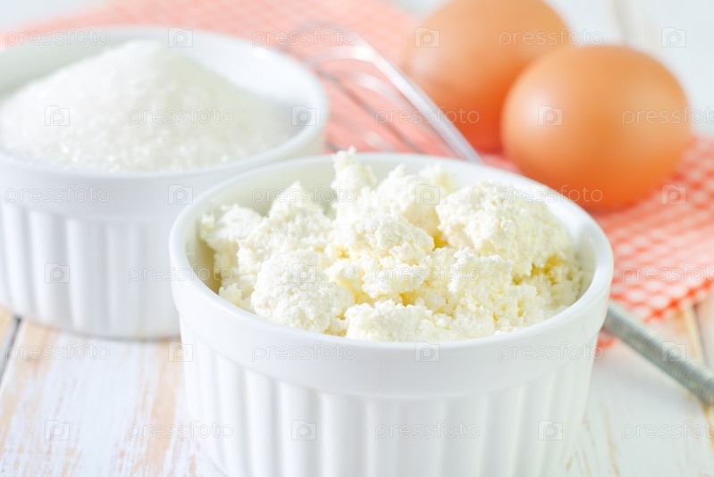 Творог, сахар и яйца