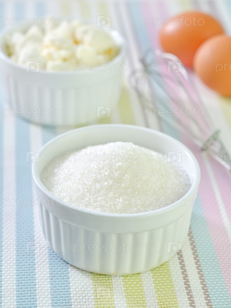 Творог, сахар и яйца