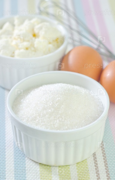 Творог, сахар и яйца