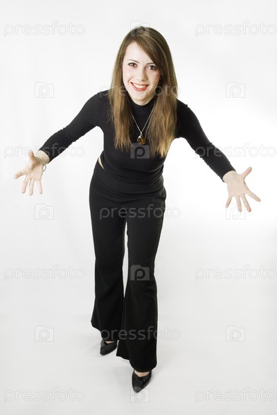 Эмоциональная молодая женщина на белом фоне