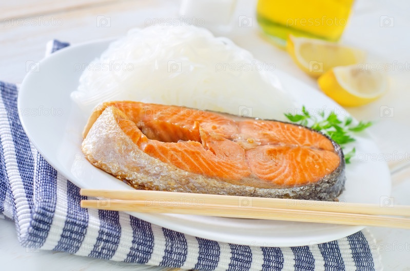 Лосось с рисовой лапшой