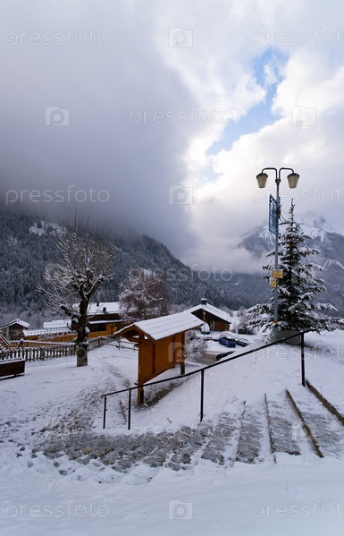 Заснеженный городок в Альпах
