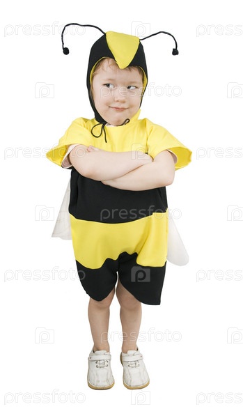 Маленькая девочка в костюме пчелки на белом фоне