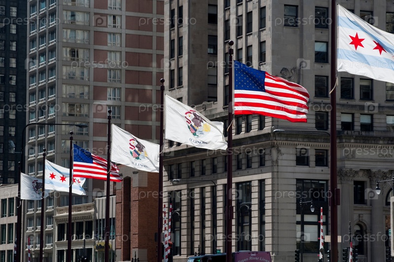 Флаги вдоль Мичиган-авеню в Чикаго
