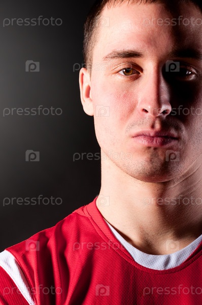 Портрет молодого футболиста на черном фоне