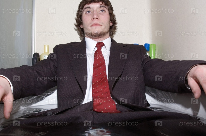 Мужчина в костюме, сидя в ванне