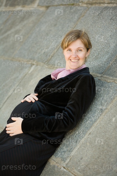 Беременная женщина у каменной стены