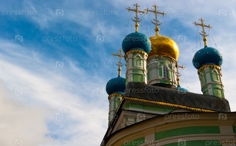 Купола православной церкви на фоне неба