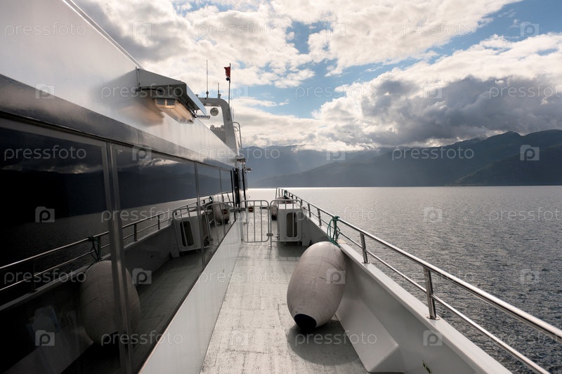 Круизный корабль в фьорд Согне-фьорда, Норвегия